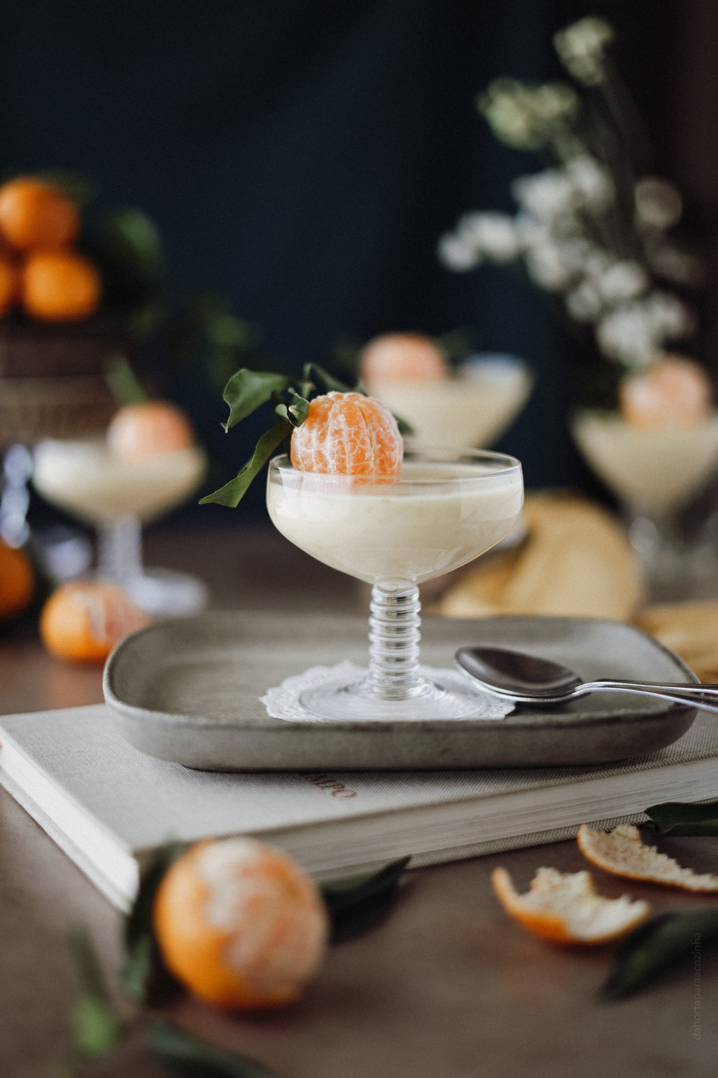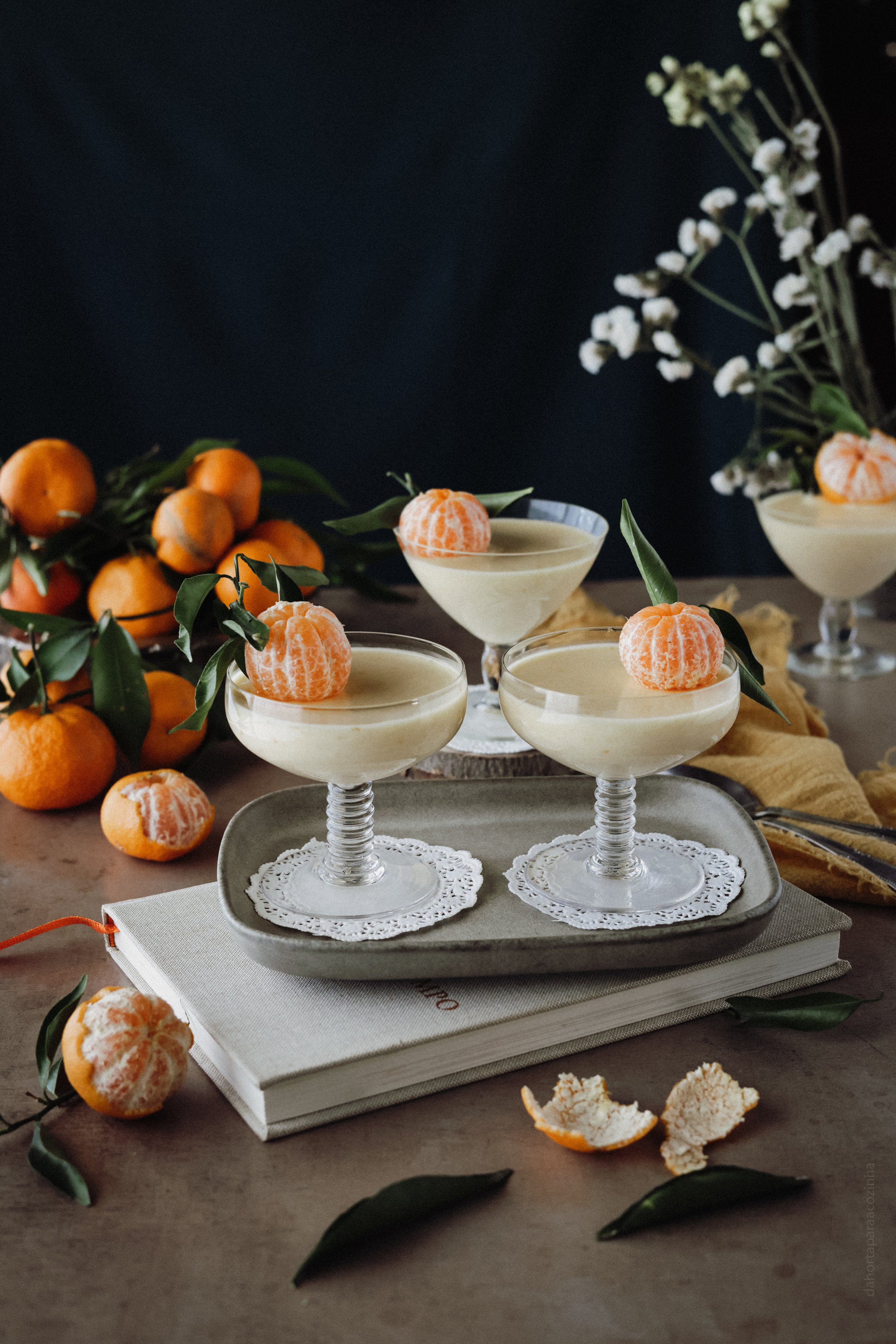Gosto de usar frutas da época e, estamos no tempo das tangerinas, foi com elas que fiz o meu Posset. Uma variação moderna deste doce tradicional, onde se destaca a delicadeza e a doçura desta fruta, resultando numa textura aveludada e num sabor refrescante. Perfeito para ser servido como sobremesa após uma refeição especial.
