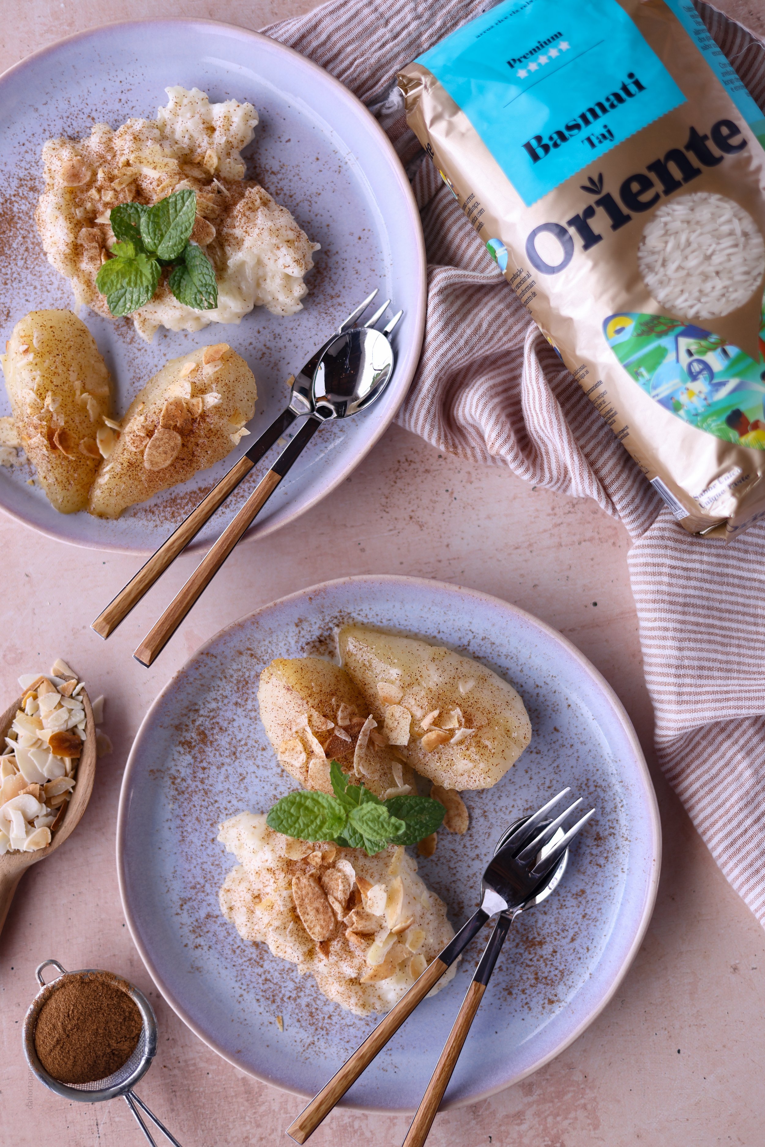 O arroz tem esta magia: combina com quase tudo, doces ou salgados, e transforma sempre o simples em especial. Nesta receita, encontra nas peras rocha caramelizadas e nas amêndoas torradas o equilíbrio perfeito entre conforto e frescura.