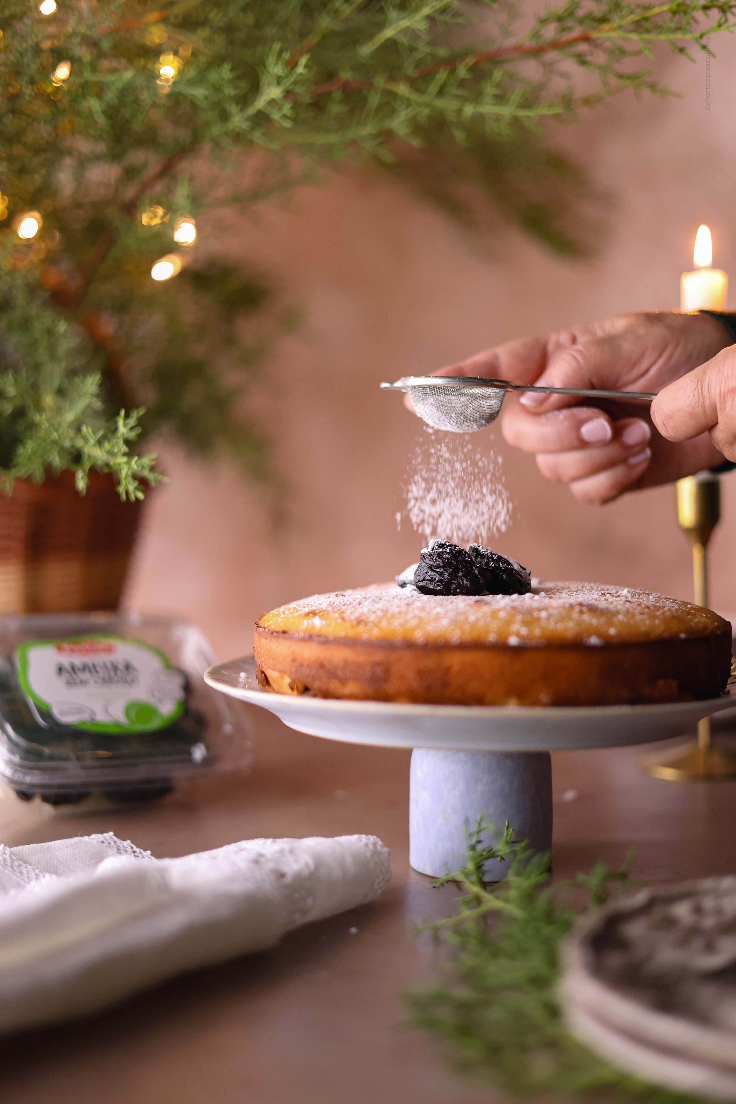 10. Deixe arrefecer e sirva frio ou à temperatura ambiente, decorado com umas ameixas e se gostar polvilhe com açúcar em pó.