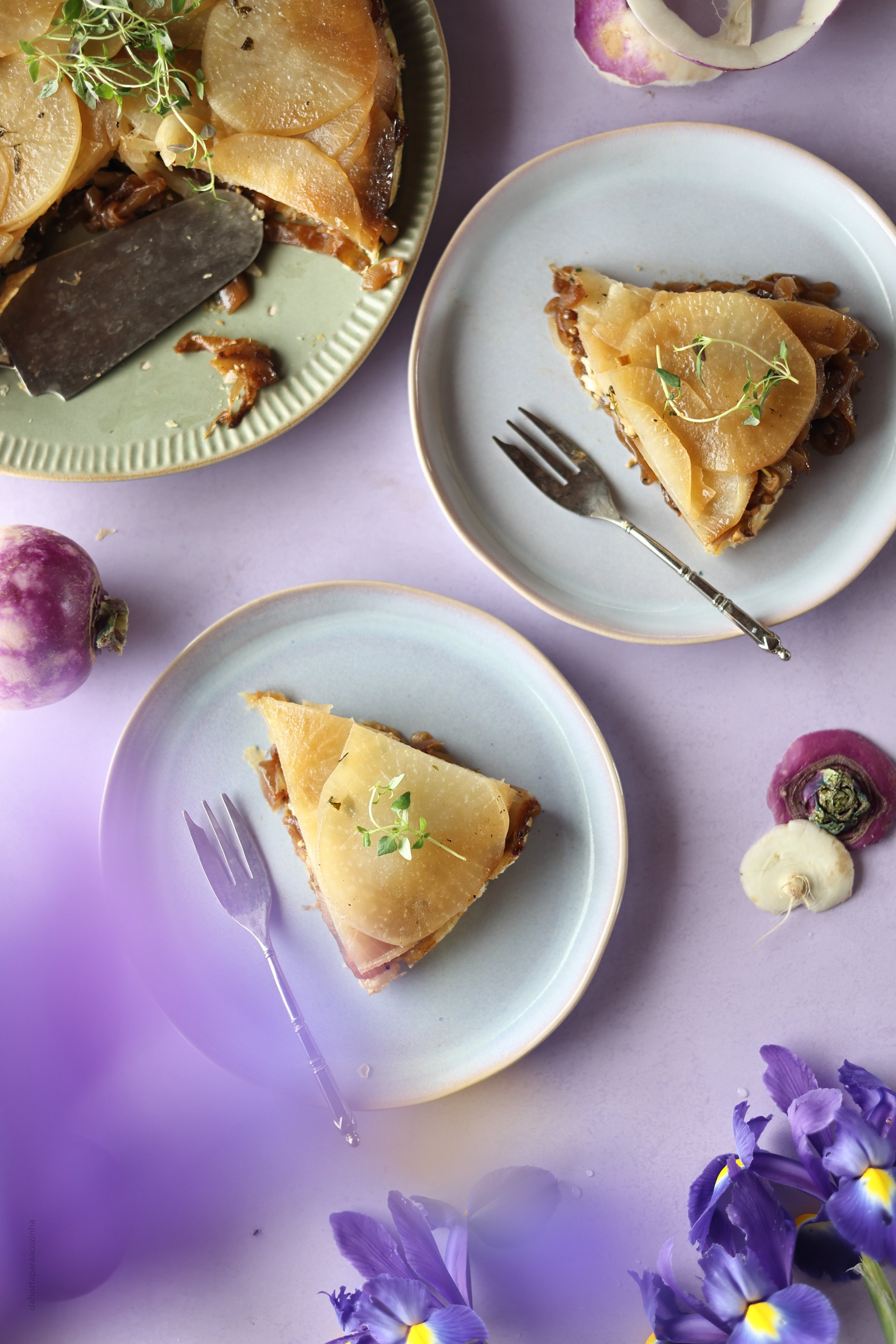 Tarte Tatin de Nabos com Cebola Caramelizada.