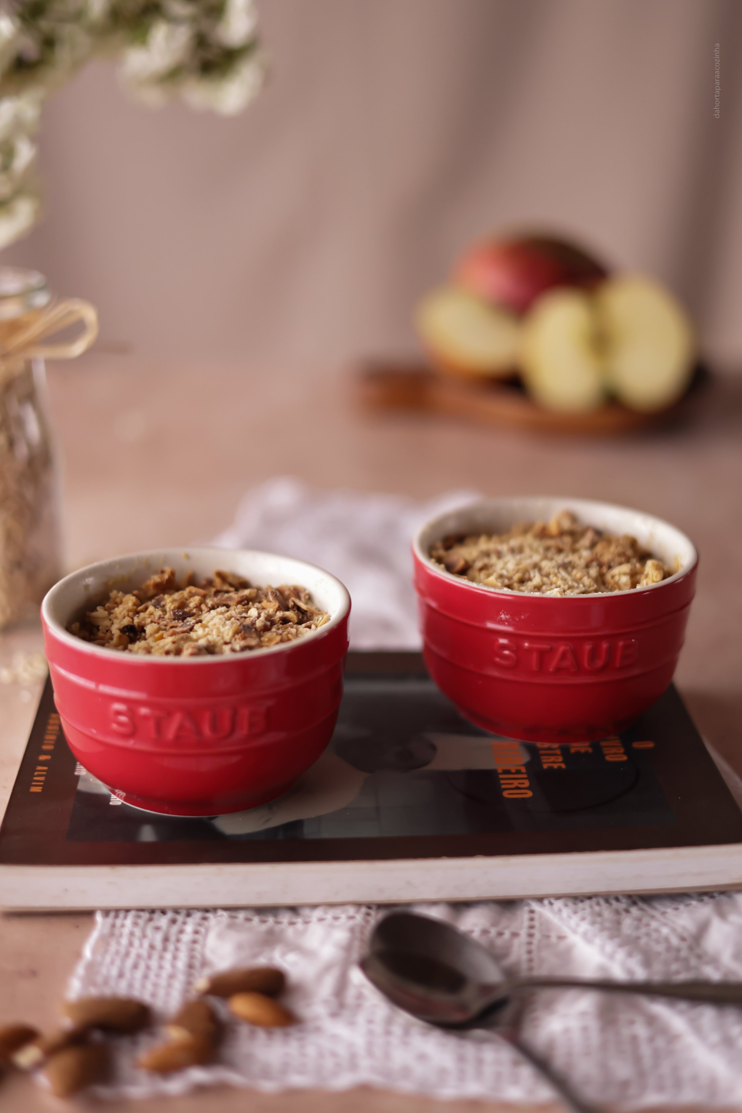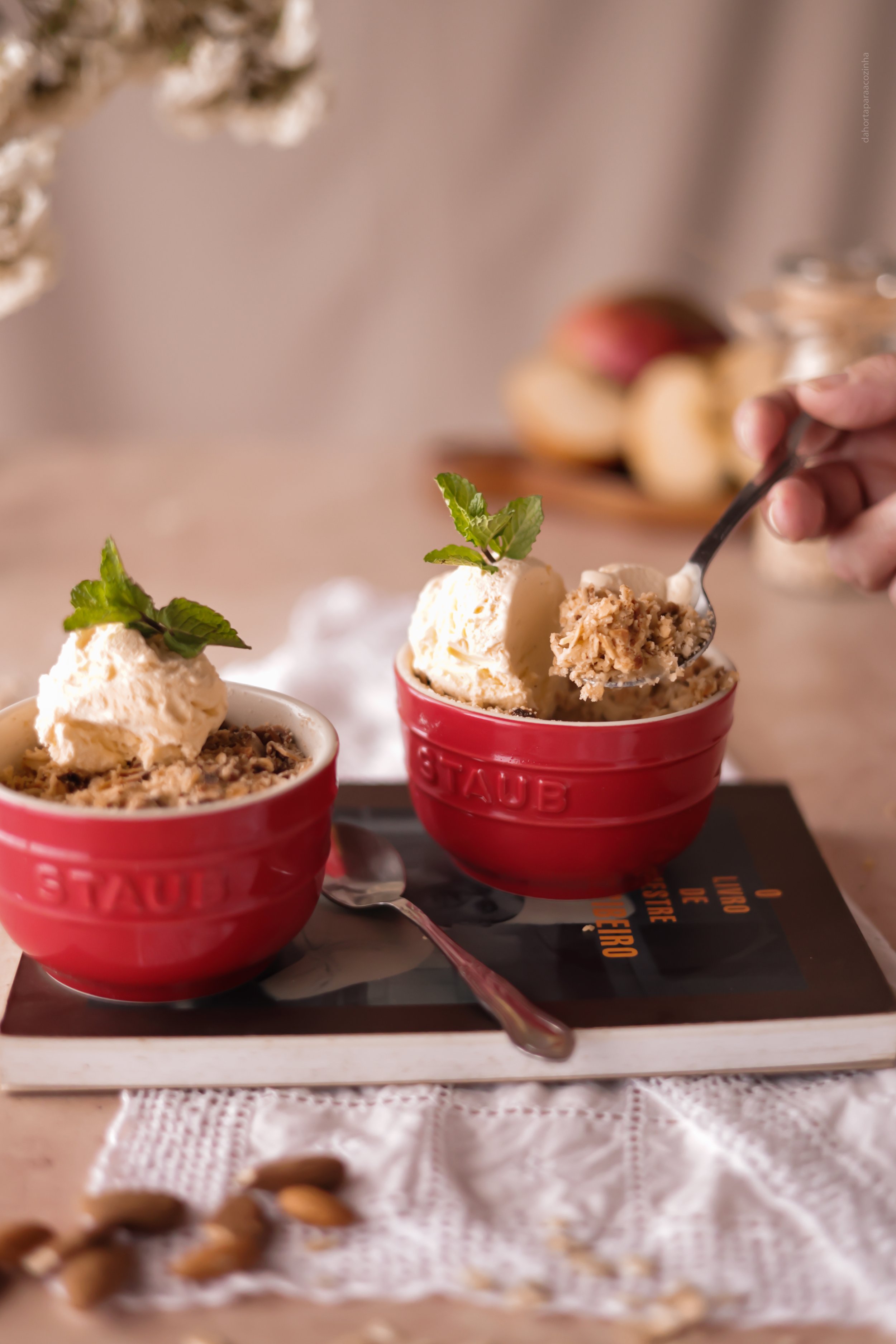 E se já é fácil no forno, na Air Fryer fica ainda mais prático. Em poucos minutos, tem uma sobremesa quentinha, com pedaços de maçã macios e uma “areia” dourada por cima, pronta para receber uma bola de sorvete ou um fio de mel.